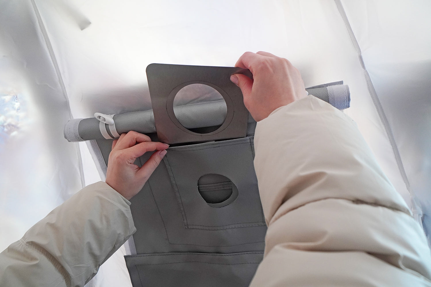 - Mesh Shelf - Install flashlight and dry gear overhead