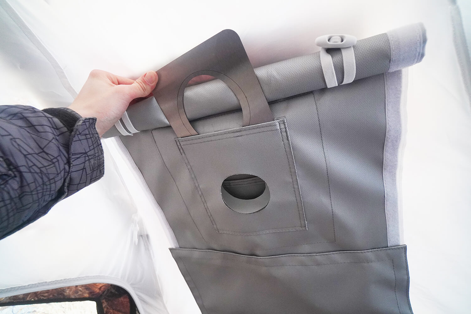 Insulated Floor (Optional): Designed for cold season warmth with special thermal insulation material. Features section for ice fishing. Attaches to frame beams.